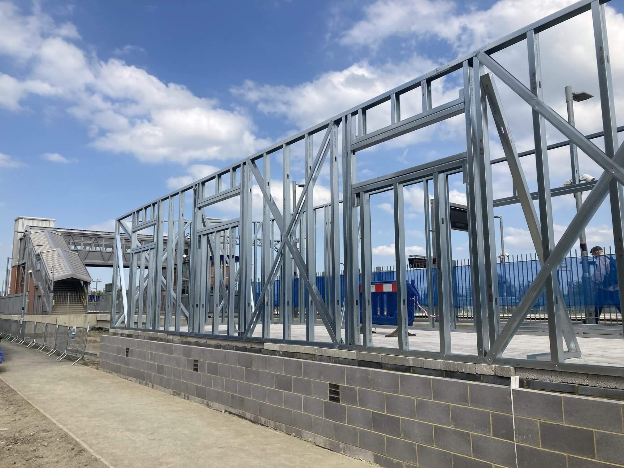 The project at Market Harborough Railway Station faced several challenges, including the constrained site location, tight build timeline, and the need to interface the new building with the existing platform infrastructure. To address these, the building was relocated slightly to avoid existing infrastructure obstructing the entrance. The construction method was modified, using an SFS framing system instead of traditional cavity walls, speeding up the erection of the walls and roof. To match the floor level of the new building with the platform, mass fill ground-bearing strip foundations and reinforced concrete ground beams were used to avoid disturbing the existing platform foundations. Additionally, a shorter, shallower drainage solution was implemented by connecting to an existing manhole, avoiding the need for a lengthy drain run. These solutions ensured the project was completed efficiently while overcoming key site constraints.